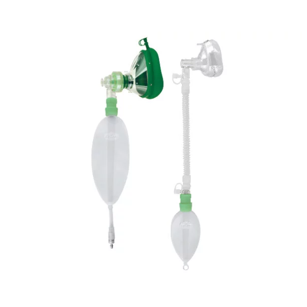 - Balão de Reinsuflação: Um balão reutilizável ou descartável conectado à máscara facial, utilizado para fornecer pressão positiva durante a ventilação manual e reinflar os pulmões do paciente.
